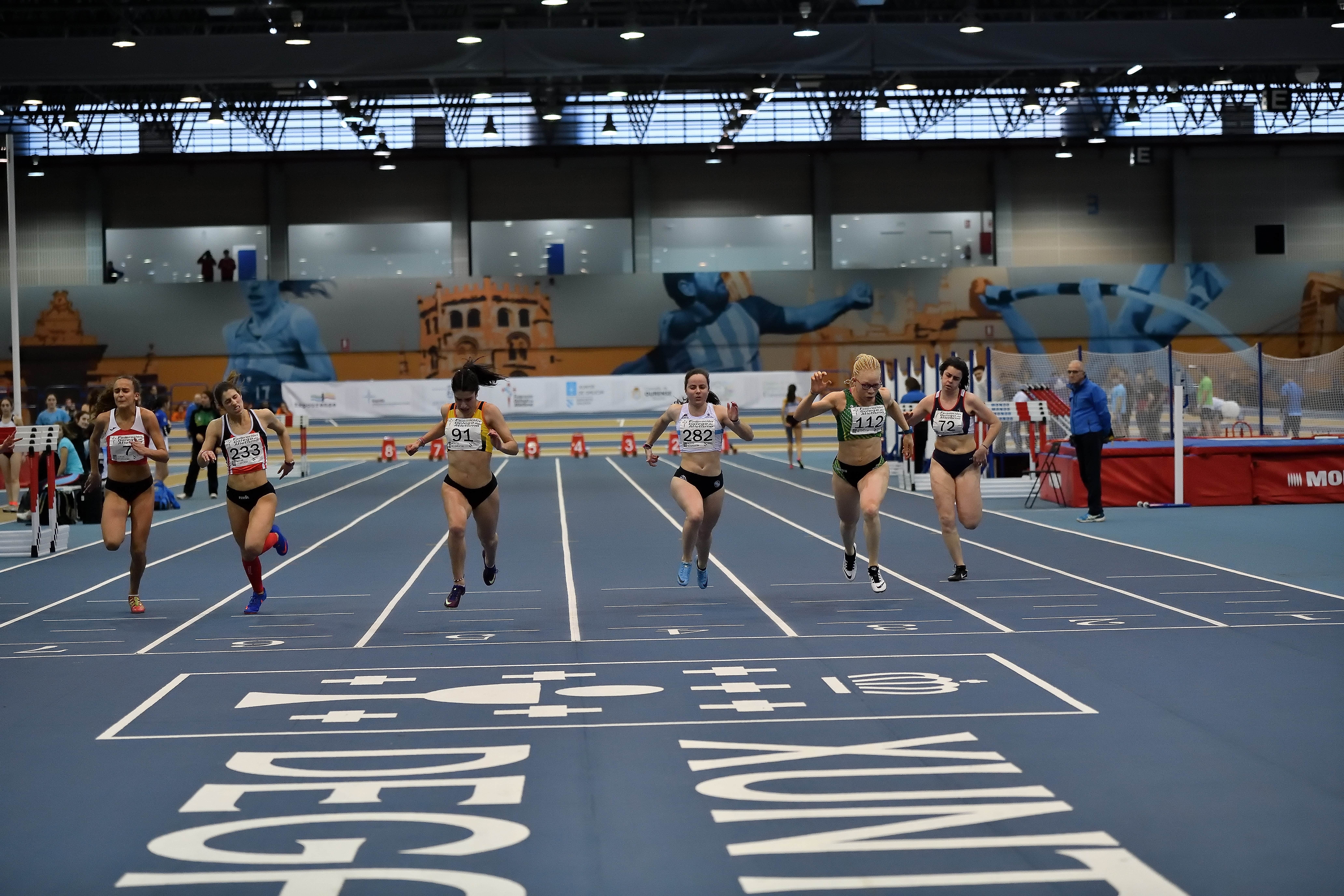 Por sectores e comezando ca velocidade, Javi García imporíase nunha emocionantísima final dos 60 m. a Javi Cancela por tan só unha centésima, marcando o atleta do Lugo RC Ramos Loures 7.00 polos 7.01 do santiagués. Na categoría feminina “explosión” da santiaguesa do Fontes do Sar Sub18 Nerea Iglesias quen tomaba parte tanto nos 60 m. como nos 200 m. Nestas distancias non só imporía o seu dominio, que fan dela a líder da velocidade curta galega, si non que ademáis a marca acreditada nos 200 m. de 25.48 representa un novo récord galego Sub18, igualando de igual modo o seu propio tope autonómico dos 60 m.l. con 7.79 acadado a semana pasada nesta mesma instalación o que a convirten na clara protagonista destos campionatos.
